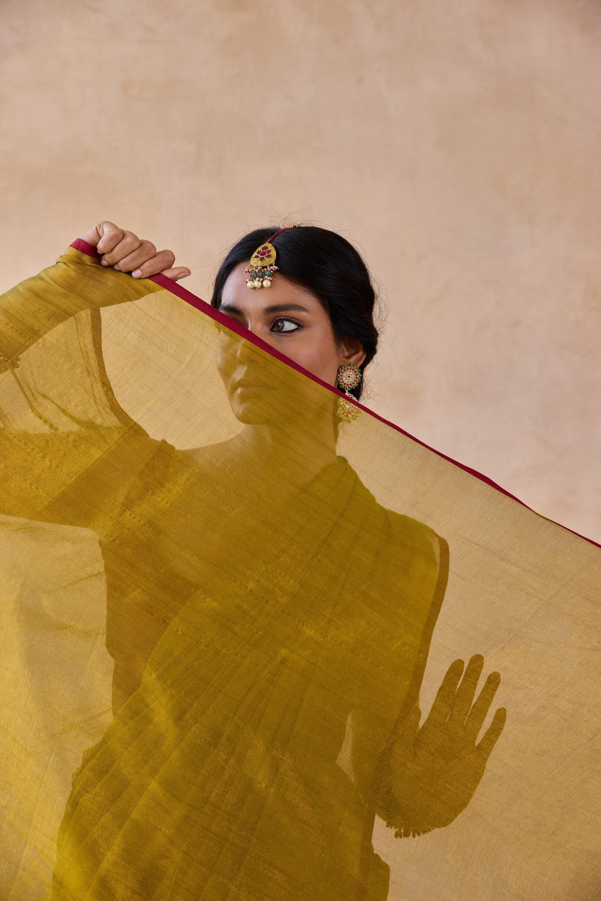 Handwoven by Bengali weavers, famed for their ultra fine weaving techniques.