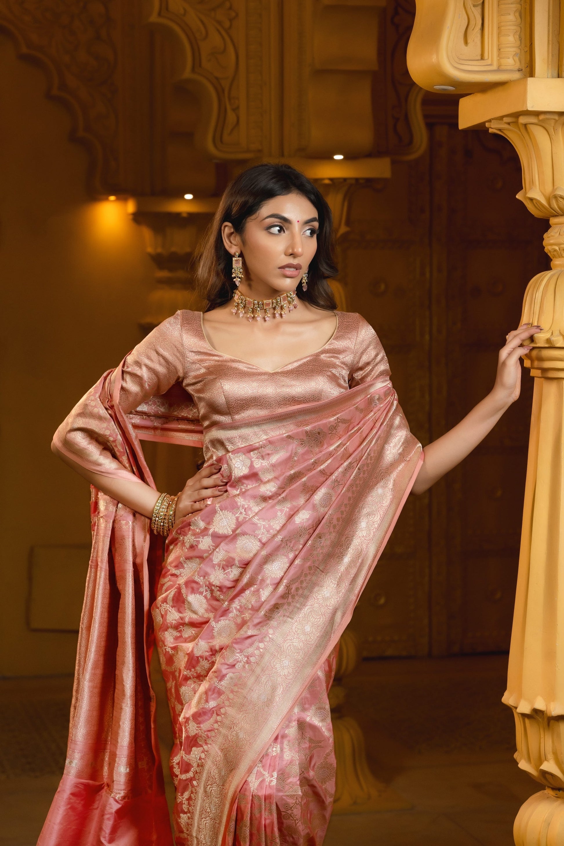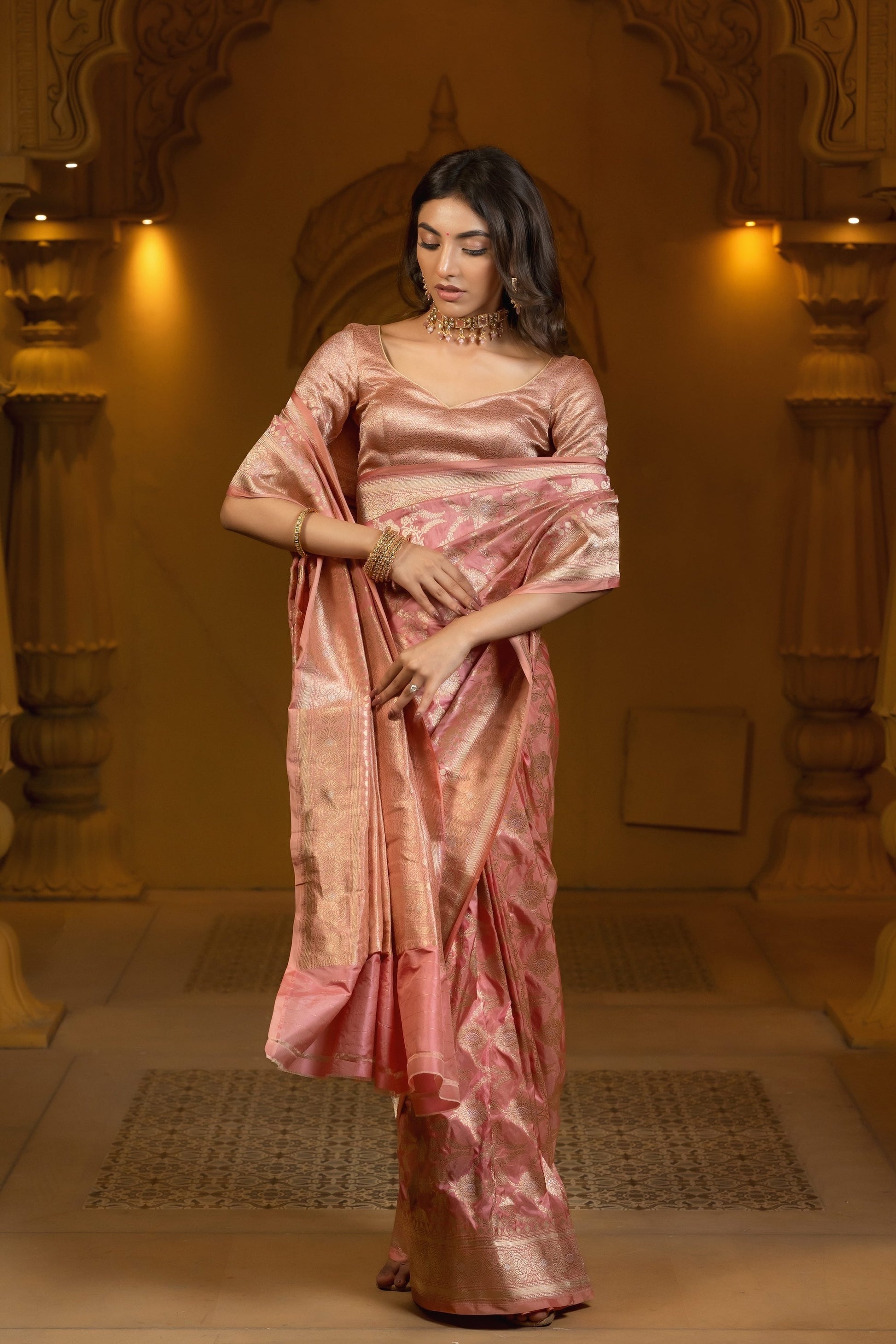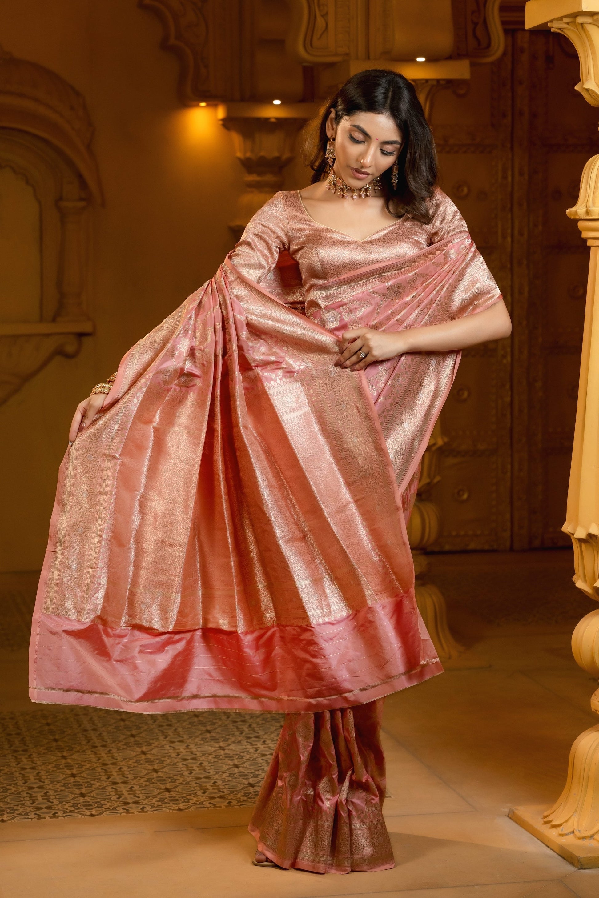 Pastel Pink Banarasi Handloom Silk Saree
