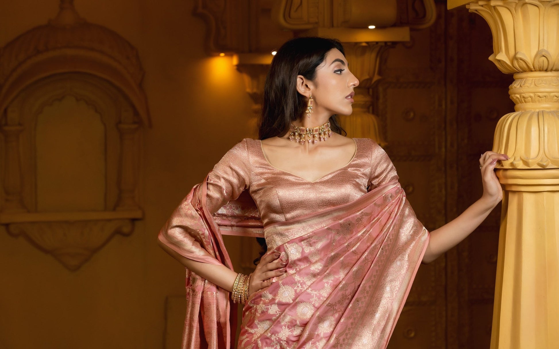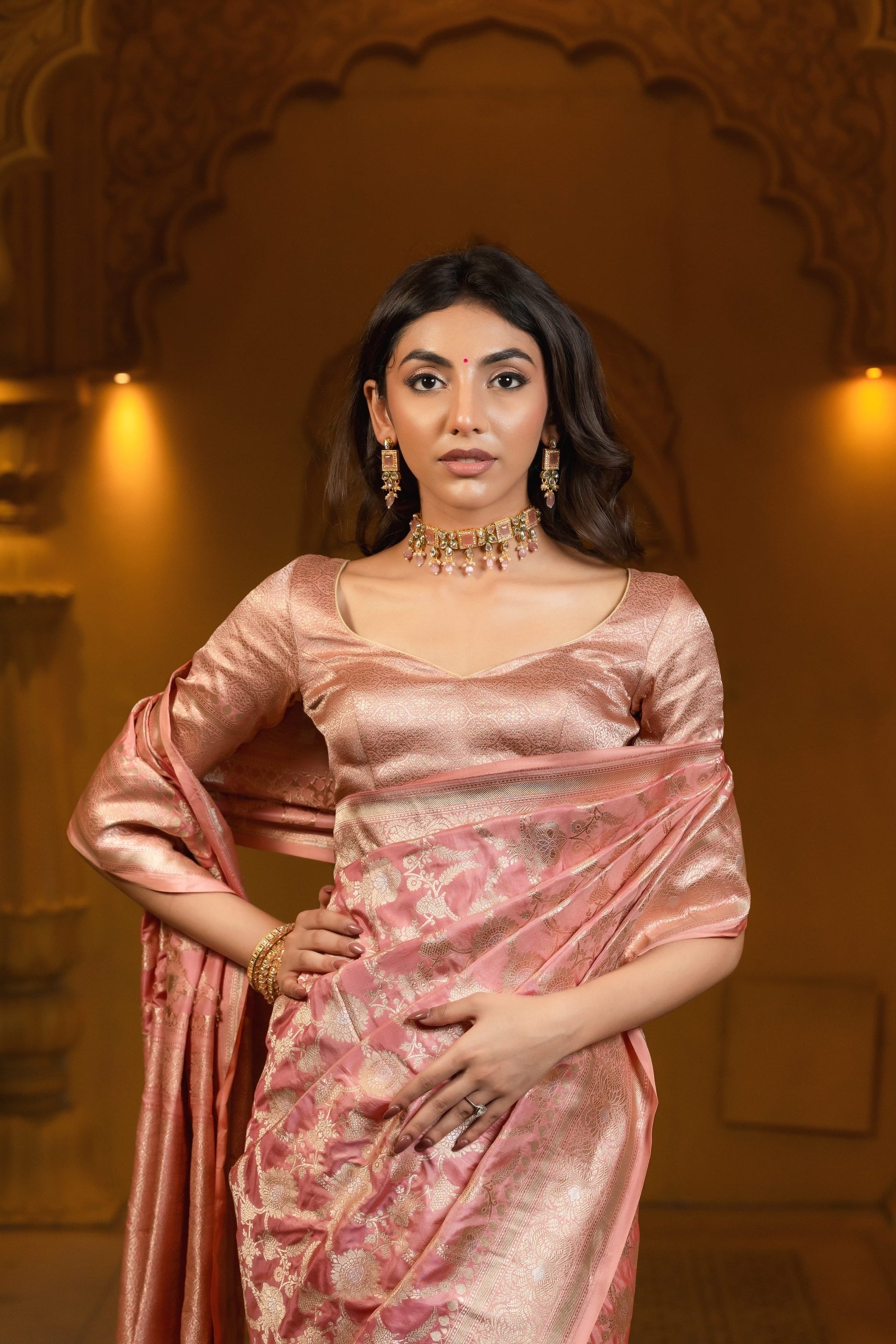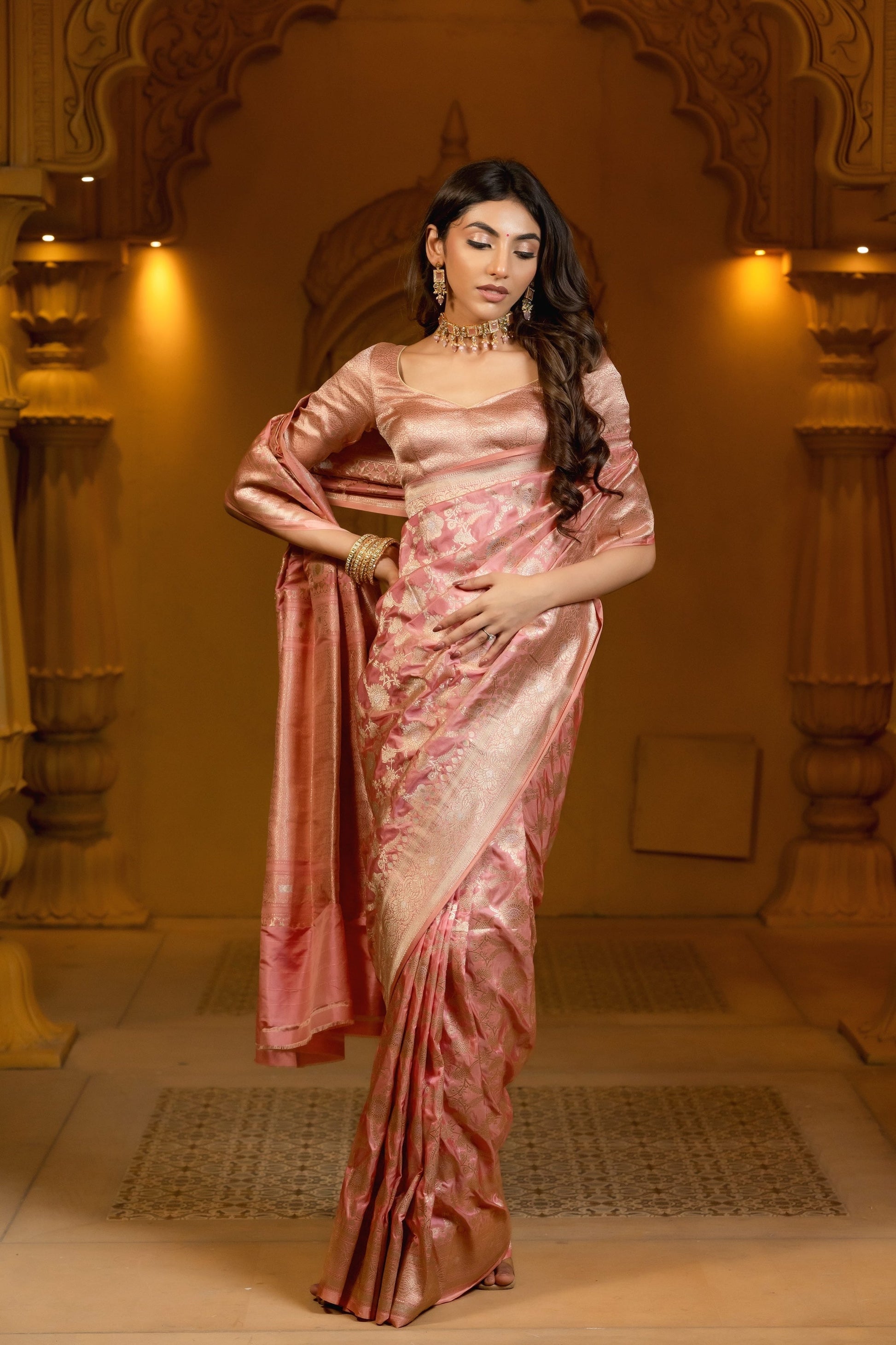 Pastel Pink Banarasi Handloom Silk Saree