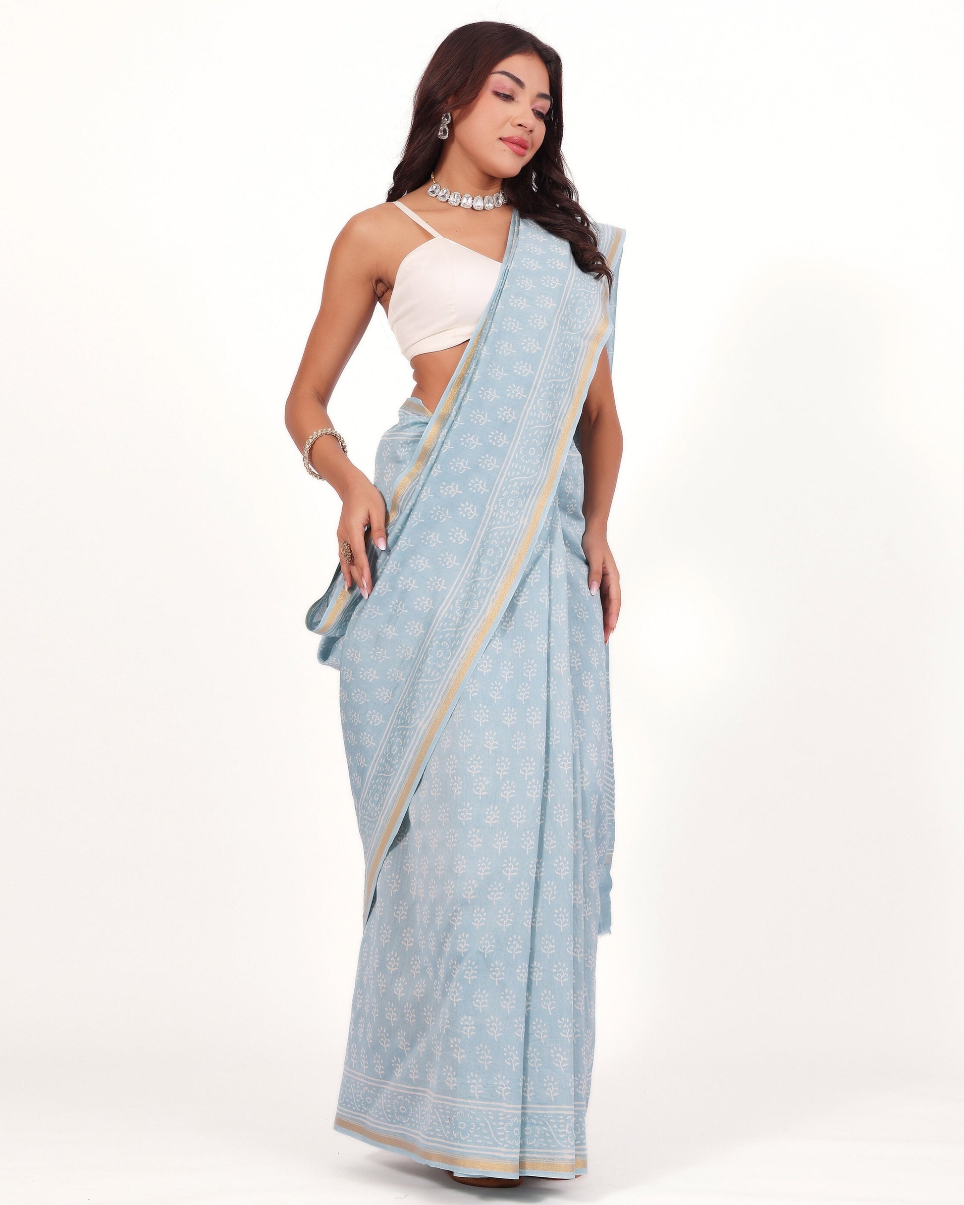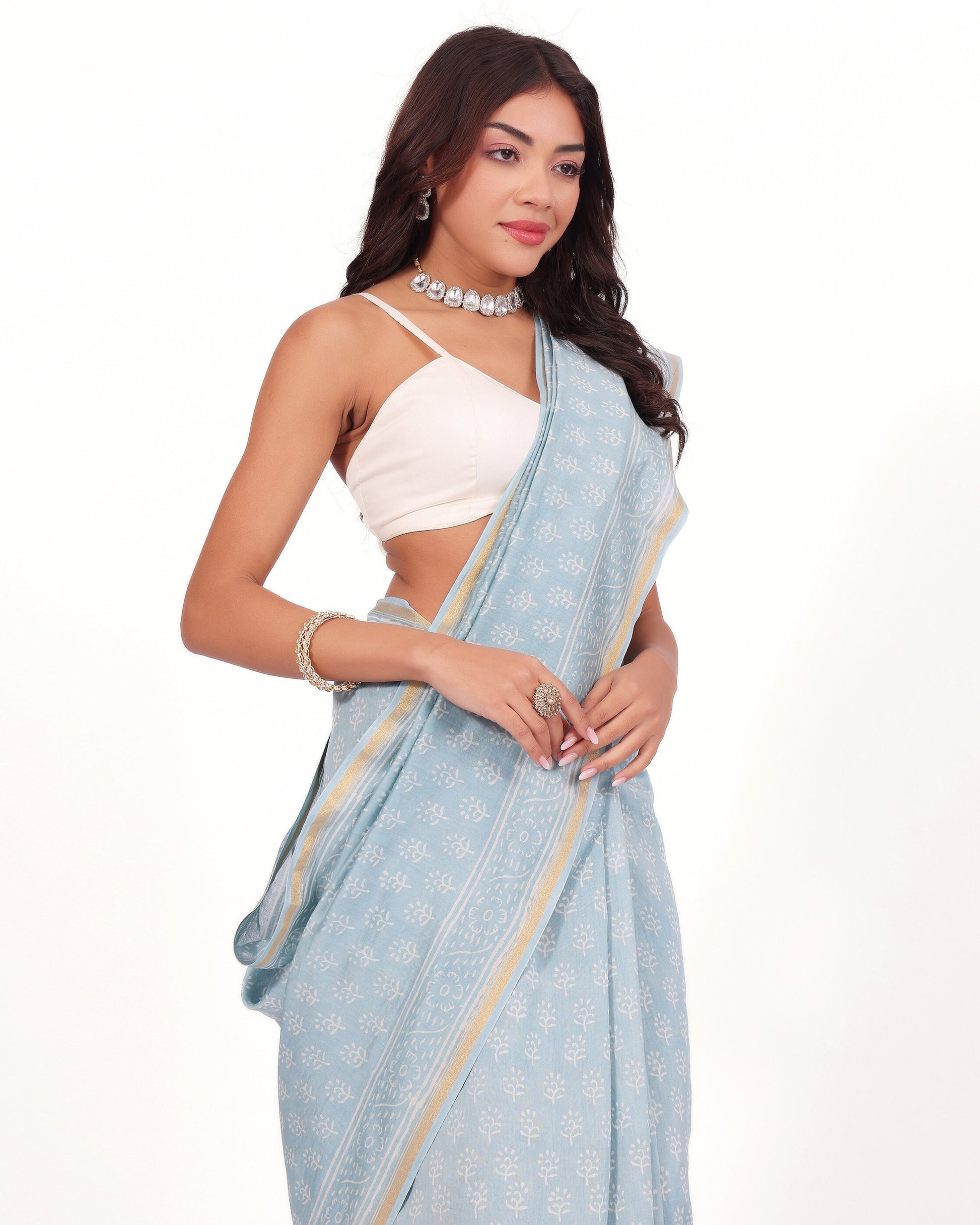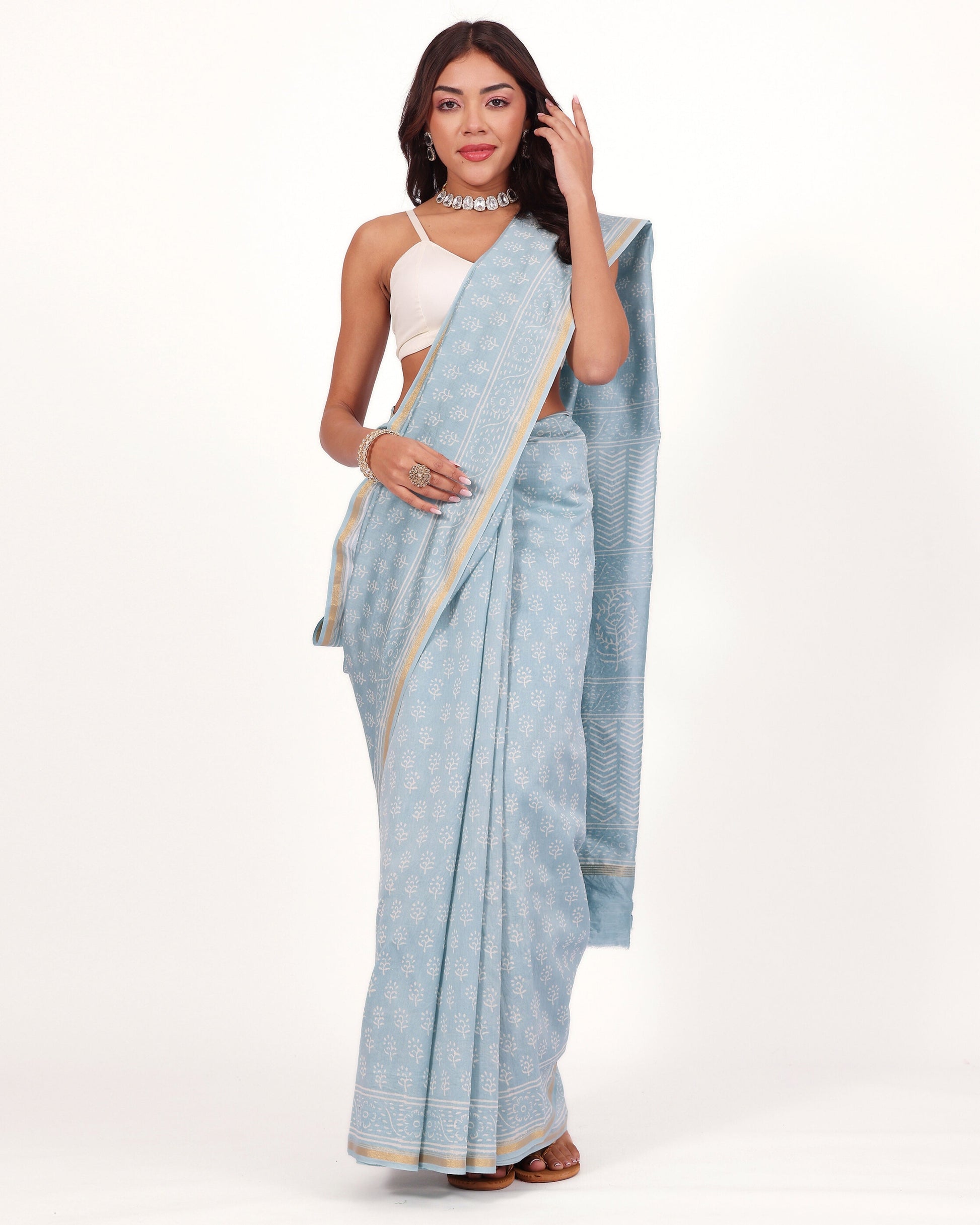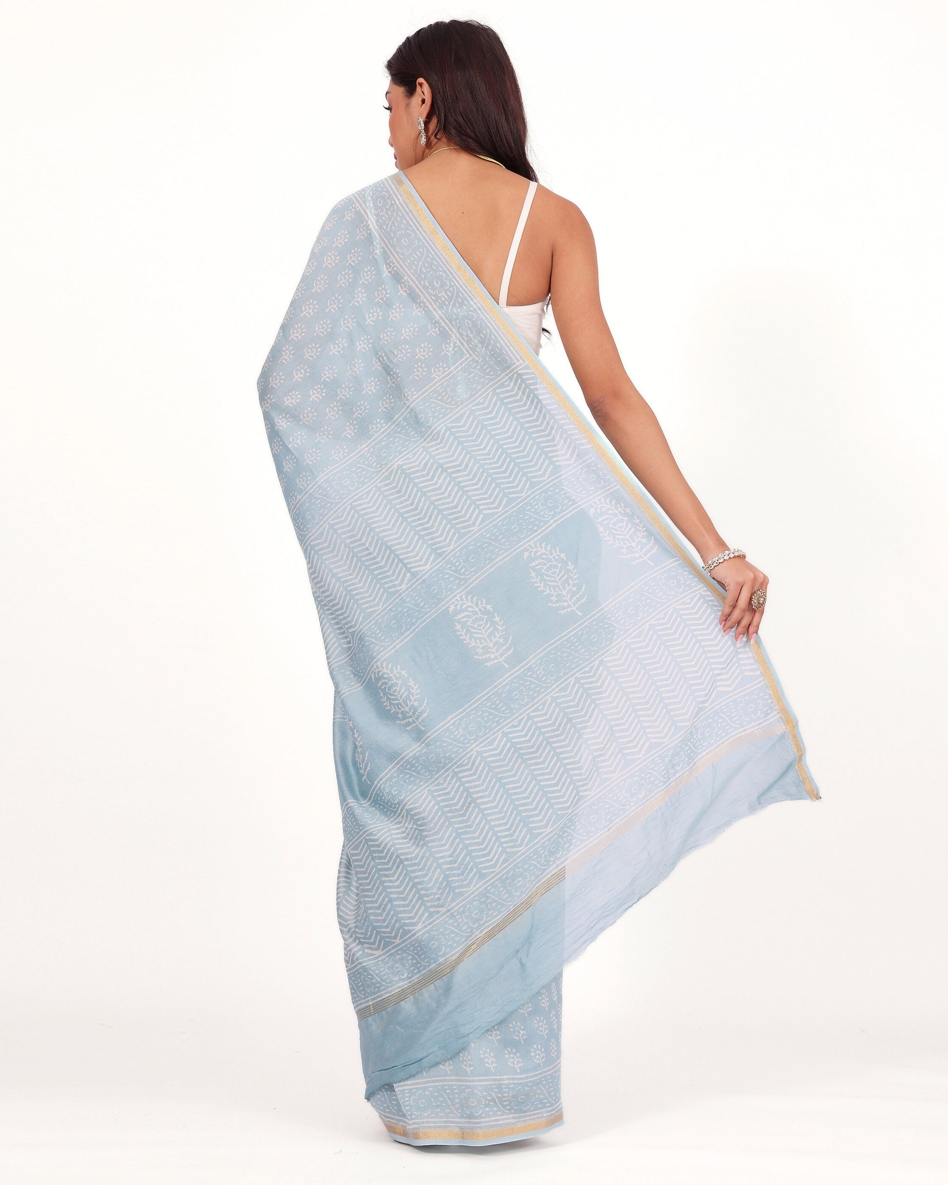 Classic Powder Blue Chanderi Saree